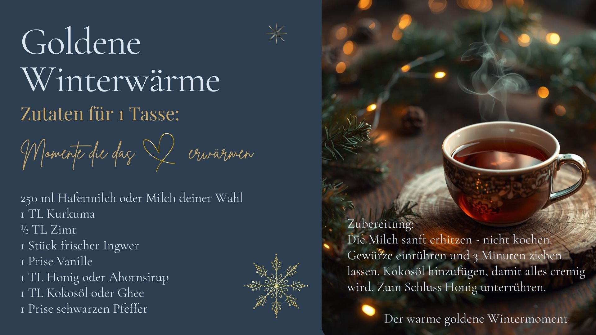 Die Zutaten auf diesem Bild wirken einfach. Milch. Gewürze. Ein Hauch Süße. Doch was wirklich entsteht, ist mehr als ein Getränk. Es ist ein Versprechen an dich selbst, dir einen Moment zu schenken. Nicht später. Nicht morgen. Jetzt.